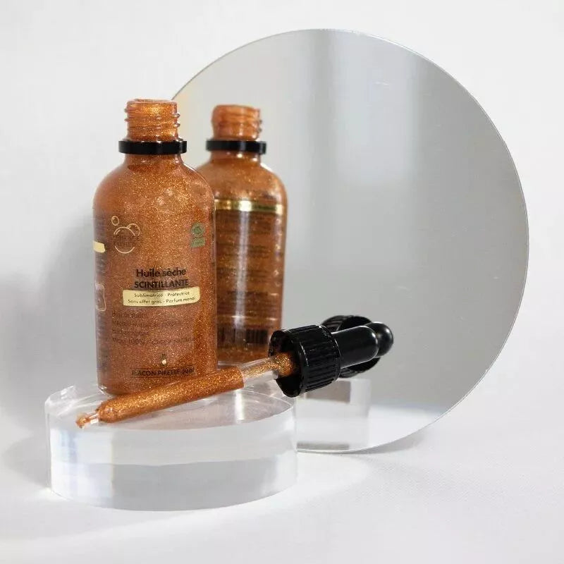 Avec notre Huile sèche scintillante, on vous propose d’agir sur tous les fronts :