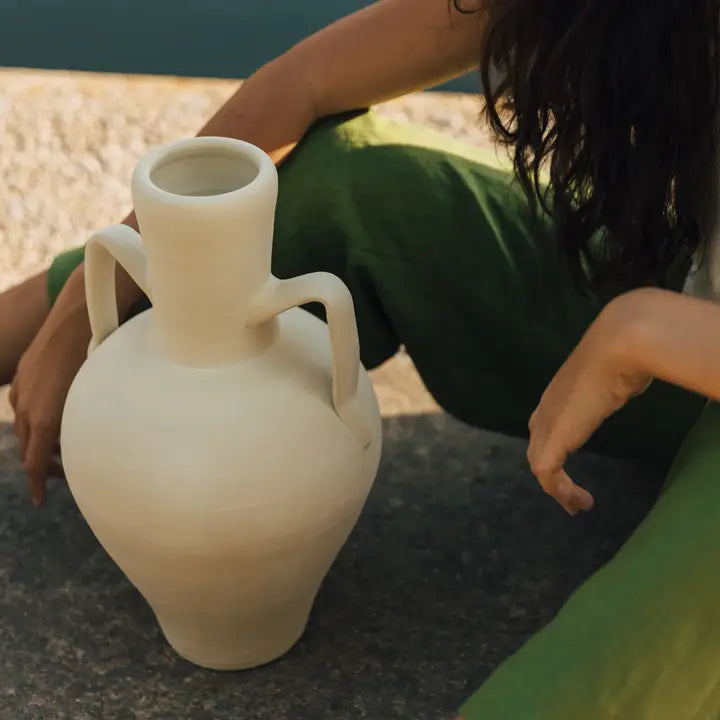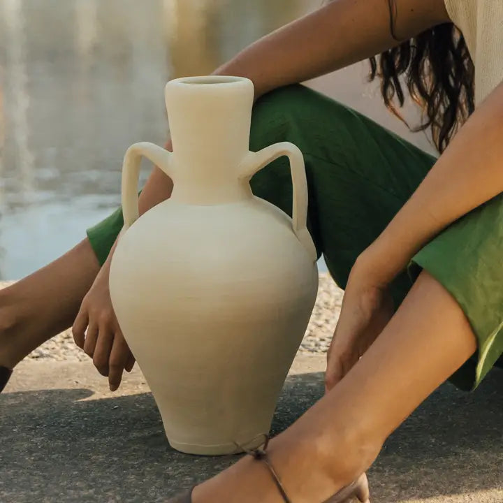 Cette pièce décorative a un aspect blanc brut et une texture rugueuse. Il est fabriqué avec des pores ouverts, nous ne recommandons donc pas de l'utiliser avec de l'eau, car il peut suinter du liquide au fil des heures. Chaque pièce est fabriquée à la main et est unique, vous y trouverez donc des imperfections et des marques. Les traces de savoir-faire sont perceptibles sur chaque pièce. Les mesures et la couleur réfléchie sont indicatives et peuvent varier en fonction du processus de fabrication.
