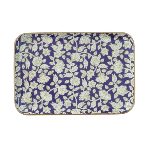 Plateau bohème chic à fleurs en métal émaillé Jaya Violine - Grand modèle