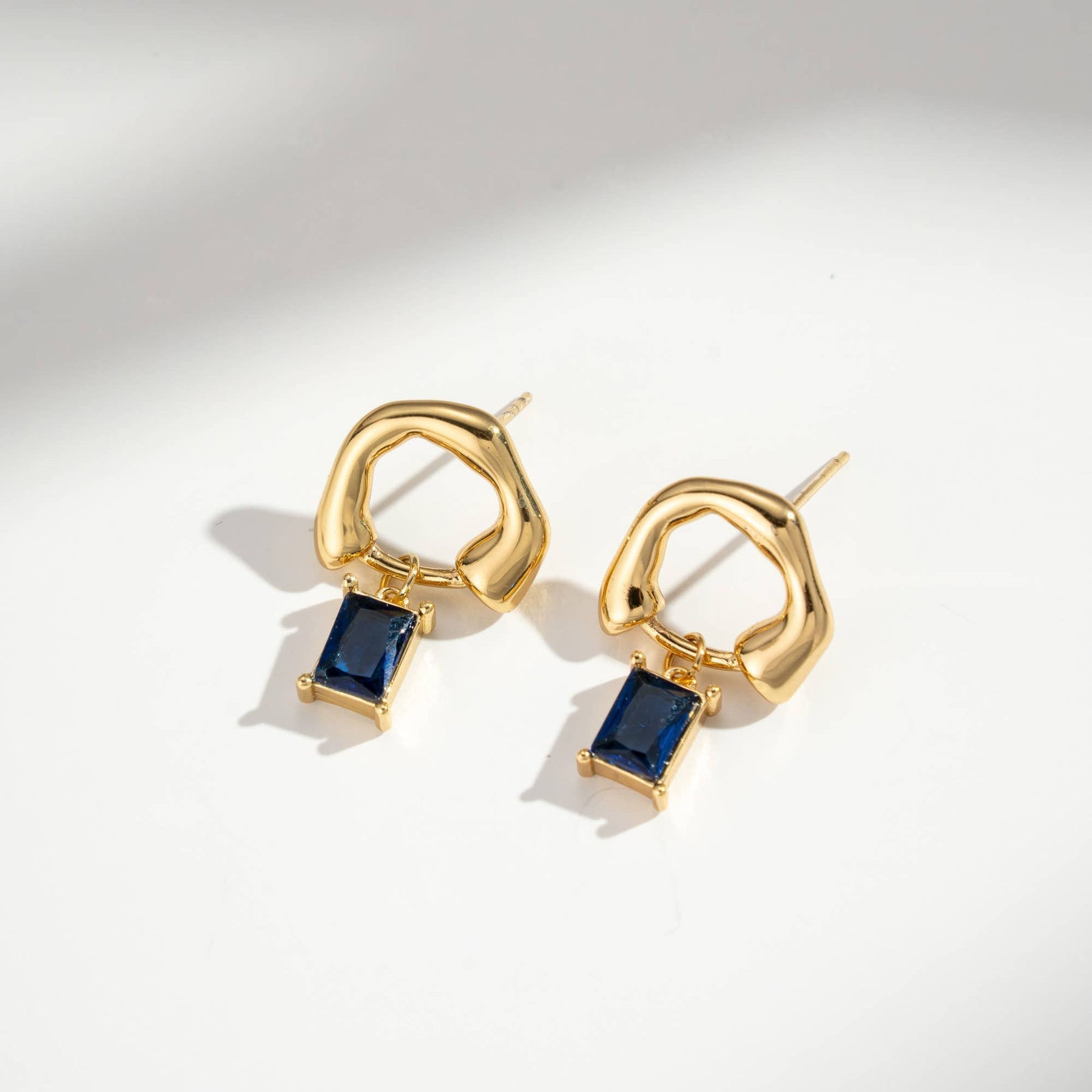 Ces boucles d’oreilles dorées en acier inoxydable allient formes organiques et éclat géométrique. Le cristal clair suspendu à l’anneau irrégulier capte la lumière avec élégance.