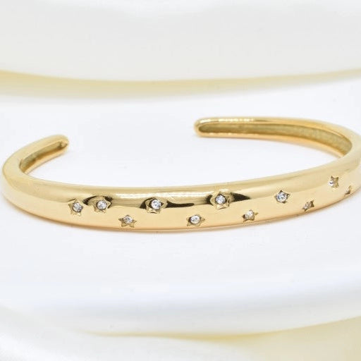 Bracelet jonc ajustable cristaux en acier inoxydable doré.