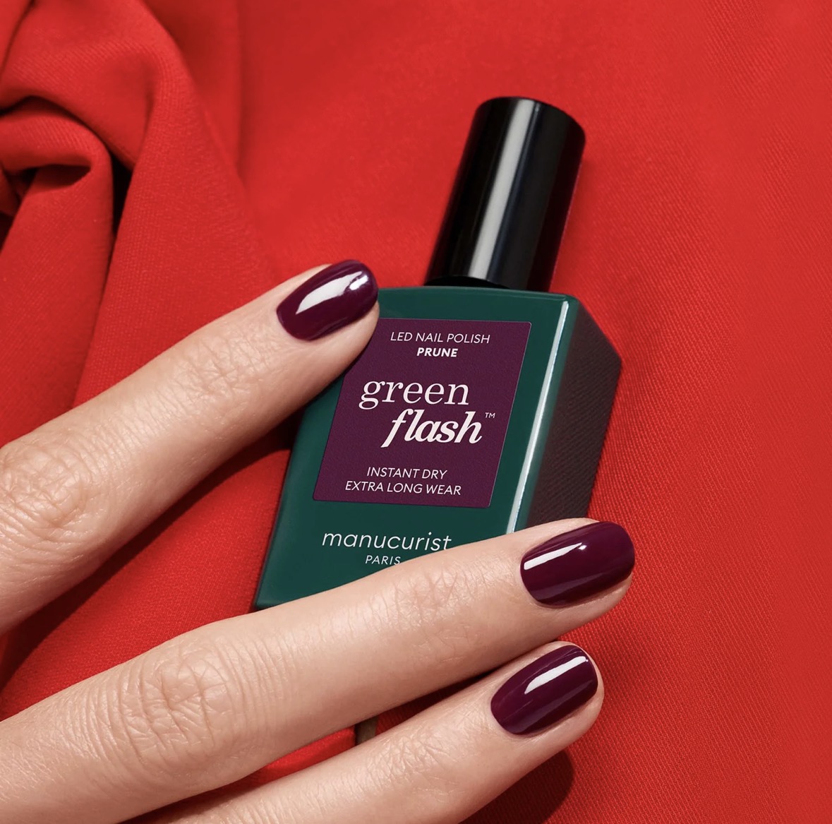 Green Flash, le 1er vernis LED sec immédiatement, ultra longue tenue et au retrait express avec un dissolvant sans acétone.